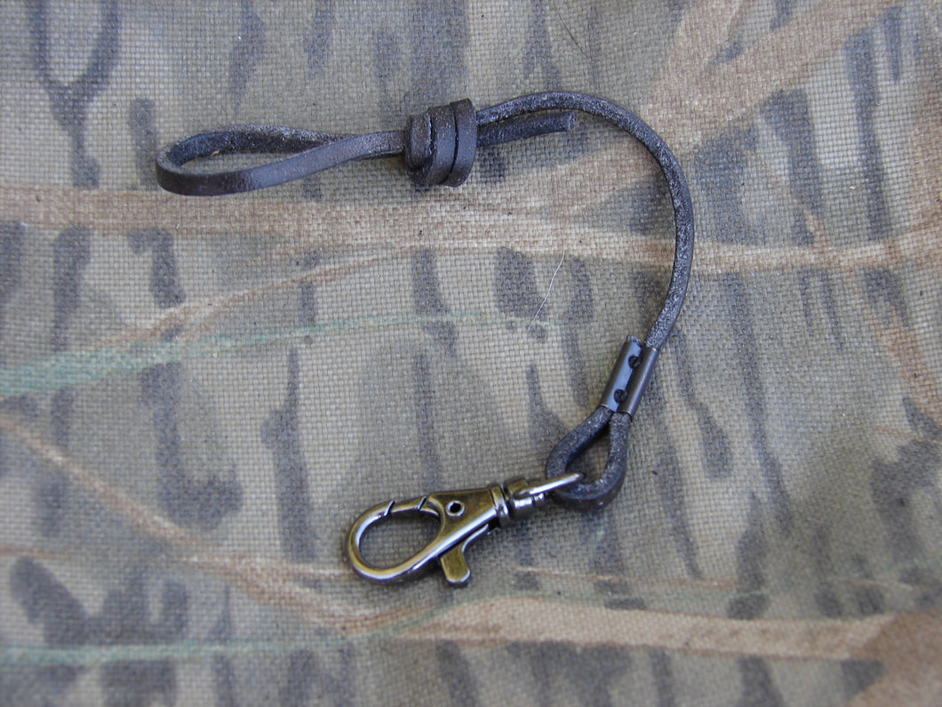 Additional QR single drops allow you to easily move, add, or replace calls on your lanyard. The colors pictured were taken before the leather is waxed, the leather will darken after waxing.